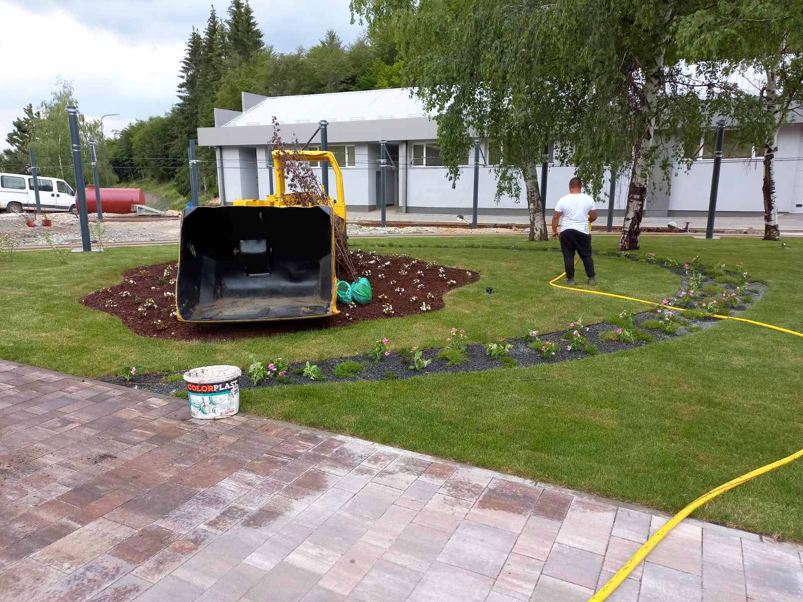 Projektovanje i uredjenje kruga firme, postavljanje rol trave i sadnja sadnica.